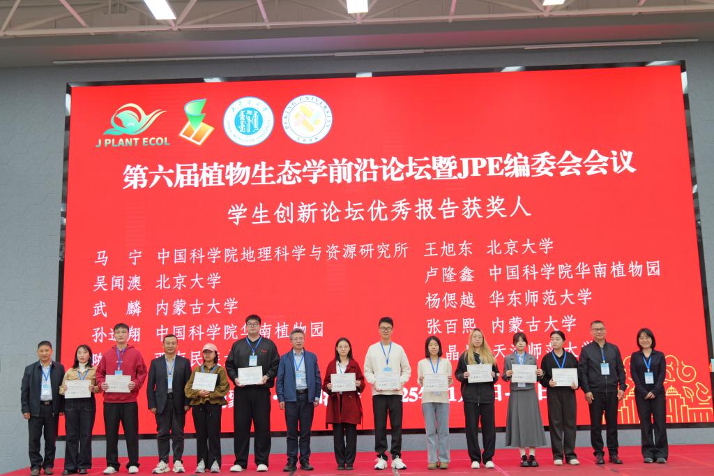 论坛还设置了元素循环与全球变化、植物与微生物生态2个专场的学生创新论坛,共26位学生作报告,由JPE青年编委组成评委团,选出优秀学生报告10名,并在大会举行了颁奖仪式,鼓励学生积极开展创新性科研工作,提升科学思维与学术交流能力。